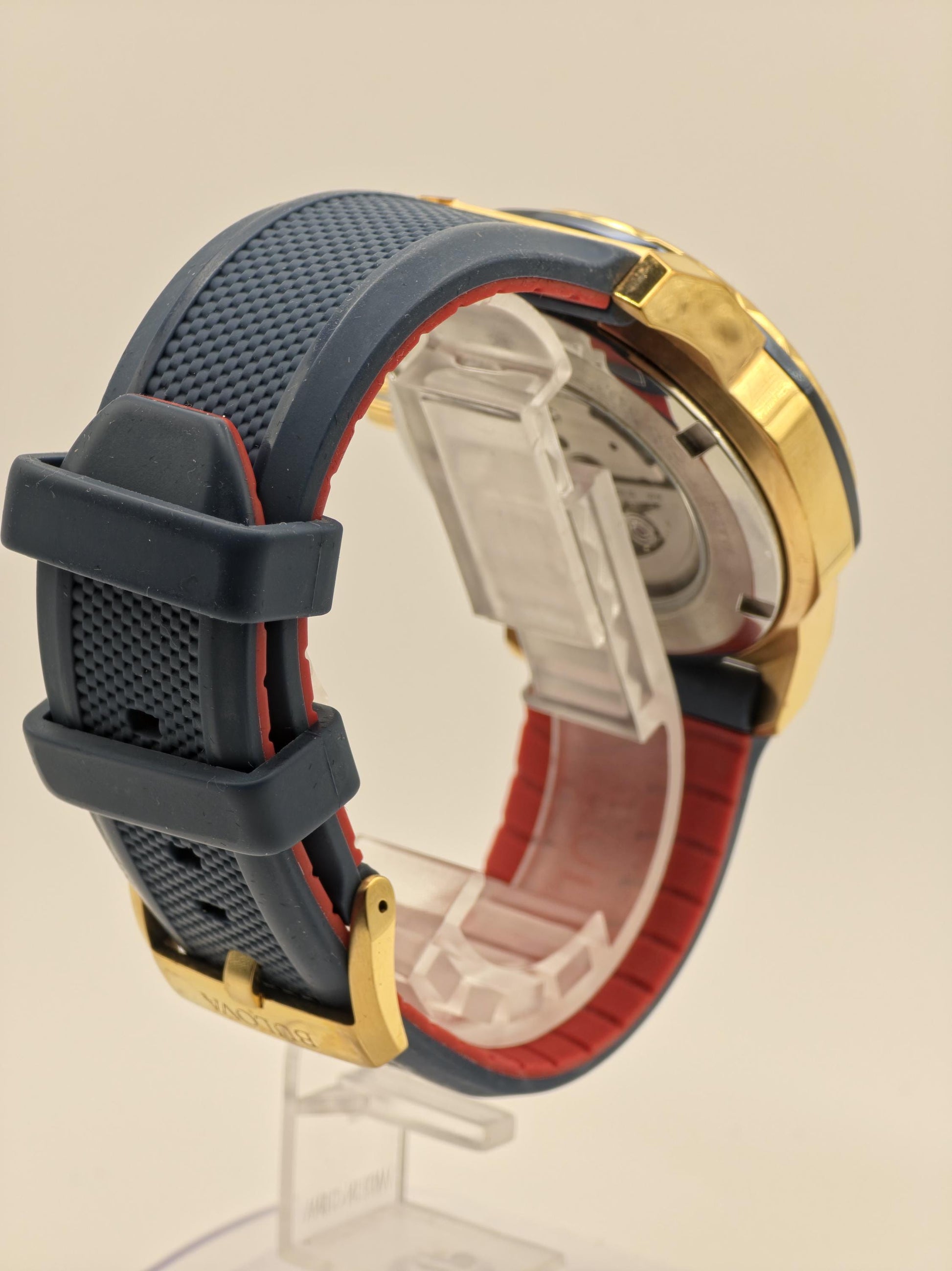 Paired with a durable rubber strap, this watch combines sporty character with refined detailing.